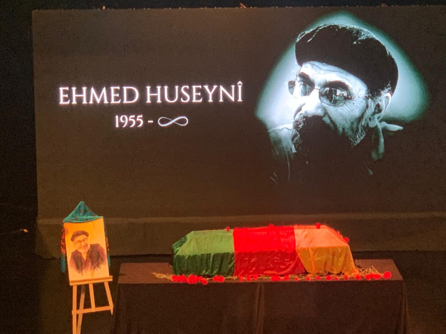 Piştî deqeyek rêzgirtinê hunermend Şêrko Kanîwar helbestekê xwend û sînevîzyona li ser jiyana Ehmed Huseynî hat pêşkêşkirin.