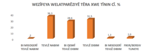 Ji % 49 ê kesên anket bi wan re hatine kirin tevlî vê hevokê nebûne. Rêjeya kesên bi qismî û tevahî tevlî vê nêrînê dibin jî bi qasî heman rêjeya kesên neyînî difikirin e.